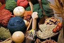 Natuurlijke kleurstoffen worden gebruikt om de wol te verfen.